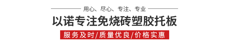 我們可根據客戶需要量身定制各種規格的免燒磚塑膠托板,適用于多種制磚機,并提供六年質保、回收的優良售后服務。安徽以諾木塑板材科技有限公司每年與多家制磚企業開展技術經驗交流活動,不斷提高公司的產品質量。